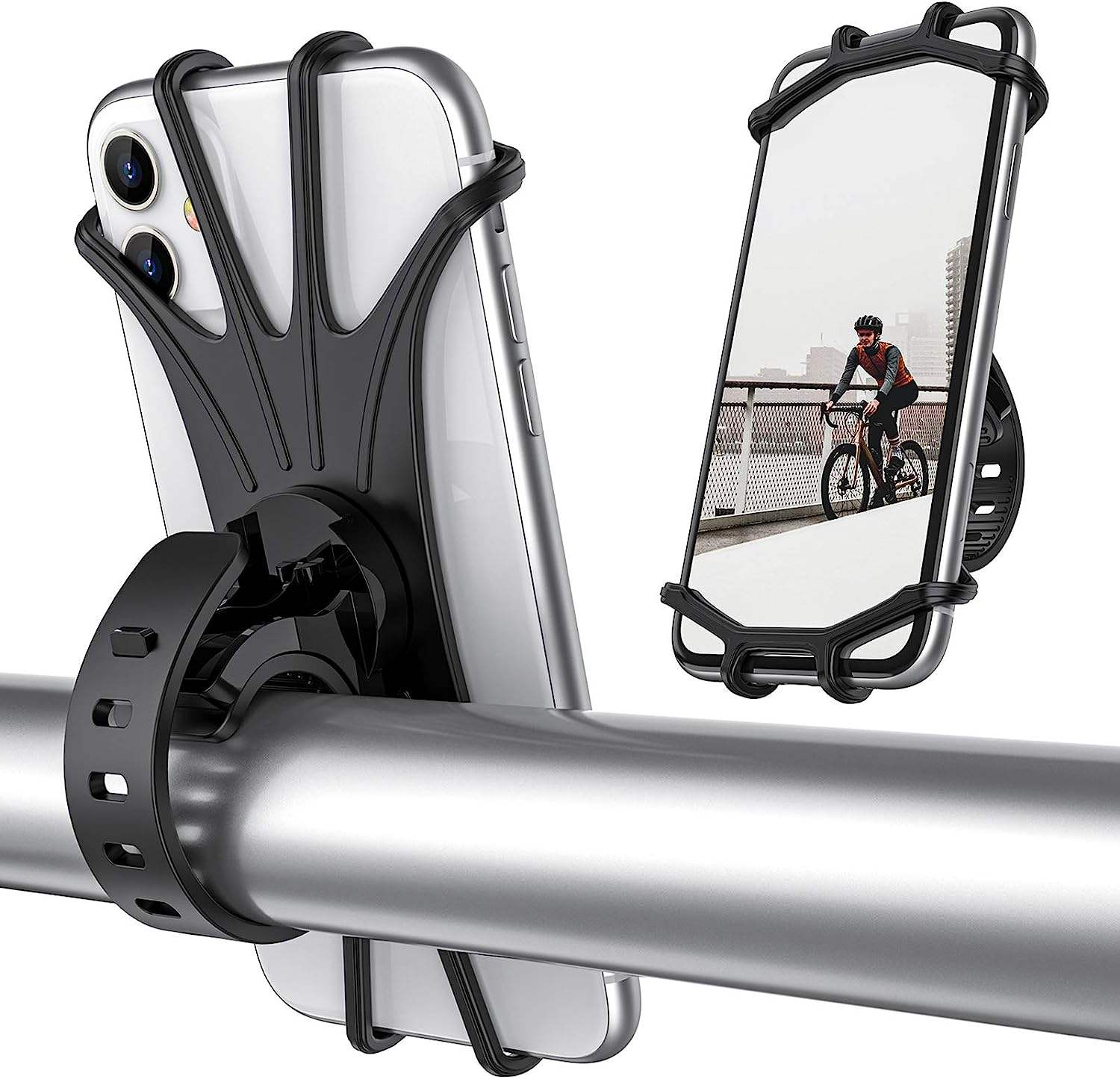 Universal Silicone Adjustable Bicycle Bike Motorcycle 360 Rotation with Handlebar Mobile Cell Phone Mount Holders for Bike
